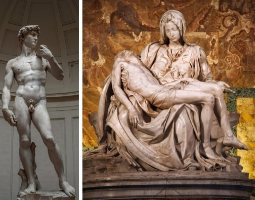 Beberapa patung paling terkenal karya Michelangelo yang diukir dari lempengan marmer meliputi: